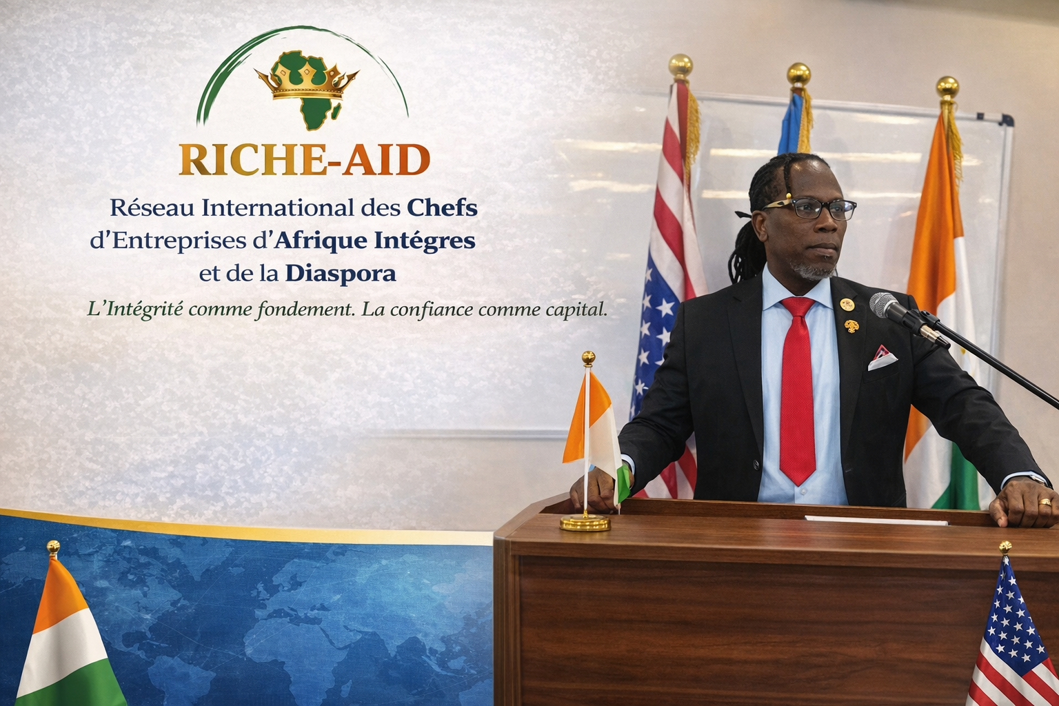 Chers dirigeants d’entreprises, Mesdames et Messieurs, C’est pour moi un honneur particulier de m’adresser à vous aujourd’hui au nom de RICHE-AID – le Réseau International des Chefs d’Entreprises d’Afrique Intègres et de la Diaspora.